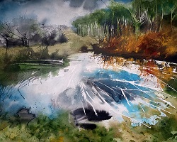 Longdown Pool, Ink on Paper